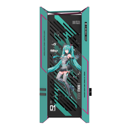 ROG Strix Helios II Hatsune Miku Edition EATX mid-tower case with glass panels, support for graphics cards up to 450mm long and 420mm radiators, graphics card brace, aluminum frame